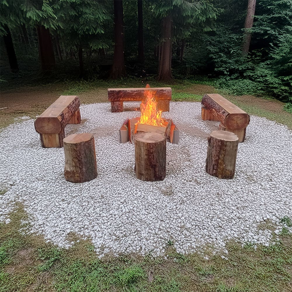 Hyggelig bænkesæt omkring et bål eller til bålhytten. Fremstillet i hele massive stammer af ren ubehandlet træ. (ca. ø30 cm)<br><br>